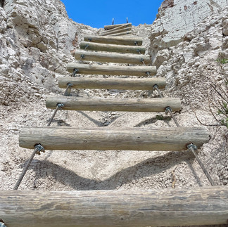 I did a lot of exploring at an area where there were 3 trails: the Door Trail, Window Trail and Notch Trail. The Door Trail was a boardwalk that leads you out to the badlands from which you can then hike into/onto the bad land features (staying up on top). I was surprised at how warm it was even though it was quite windy. This place must be unbearably hot in the summer - definitely has a desert like feel to it! The next trail was the Window Trail which was just a short boardwalk to an overlook. The Notch Trail was definitely the highlight of my day! It’s about a 2.5 mile RT Trail and about halfway in you climb a wooden ladder up about 80 feet and then continue hiking from there. There was one family trying to come down the stairs with a young crying child so I waited at the bottom with a couple other hikers. I can only imagine this ladder will be a crowded mess when this place is filled with tourists in the summer! And yes, going down the ladder was definitely a lot more challenging than going up, but the topography and views from the top or spectacular.
