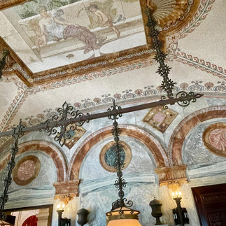 I decided that no visit to Newport would be complete without a tour of the famous Breakers Mansion, known to be the grandest of all Newports “summer homes”. This is an incredibly gorgeous and over-the-top mansion built in the late 1800s for the Vanderbilt family. I’ve been to lots of European castles and churches and other fancy places and this ranks right up there with the best of them! Gold guilding everywhere, incredible ceiling art, lavish decorations and furnishings, indoor fountains, intricate wood and stonework …. Just incredible. They have a great audio tour that guides you through the mansion room by room and points out all of the special features and sites. And not only is the interior gorgeous but the exterior is stunning as well; 180° ocean views and a sprawling lawn were only made more beautiful by abundant blue skies and sunshine. What an amazing place!