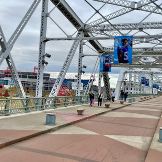 It was fun to tour Nashville and get my bearings. The downtown area is right on the waterfront and the Titans stadium is immediately across the river. There is an old bridge that has been turned into a pedestrian bridge which made for a nice walk and view of Nashville. all the bars are arranged so that the stage is right up against the front window and the performers back is to the street and they played to the audience inside. Because of the good weather they all had their giant windows open so you could see and hear the performers as you walked by. They were all excellent! I'm looking forward to going to several different venues this weekend to check out the music scene. 🤠 🎶