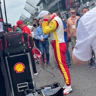 I’ve been collecting a sticker from the different places I have visited and went to a vendor to buy one. The vendor asked me where I was from and struck up a conversation and I told him that I had never been to IMS and was so excited to explore. He immediately reached into his pocket and said “then take this for a couple of hours – I buy a bronze Pass every year which gets me access to the garage area and you can use it to go explore” - midwestern hospitality sure is amazing! I took his bronze pass and made my way over to Gasoline Alley, the nickname of the garage area where each racing team has several garage bays where they can work on their vehicles. It was amazing to be able to look in the garage and see the mechanics all working on cars that will be towed out onto the race track in just a few minutes. I hadn’t been there long when Nario Andretti came out of his team’s area to sign some autographs and take pictures with fans. I couldn’t resist a selfie with him!