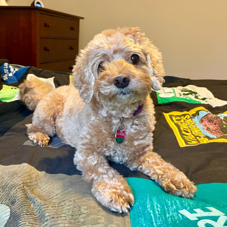 Sophie has some adorable habits. She sleeps in a crate next to her parents bed and in the morning when she first wakes up they let her out and she comes up on the bed and snuggles for another hour or so before needing to get up and go pee. I moved her crate and her stairs into the guestroom where I’m staying and we continue her routine in the morning – she is so cute!