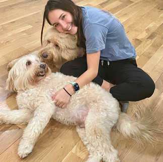 I spent the past several days with Brianna's family in Atlanta and they have two adorable dogs: Teddy and Maverick. Teddy is the senior citizen of the 2 but still can hop up and grab a frisbee, and Maverick loves playing with squeaky tennis balls. Maverick is super skilled at jumping up and picking a thrown tennis ball out of the air. Maverick also brings plastic bottles to the recycle bin 💗 they are both so well-behaved and love to play and cuddle and are adorable.